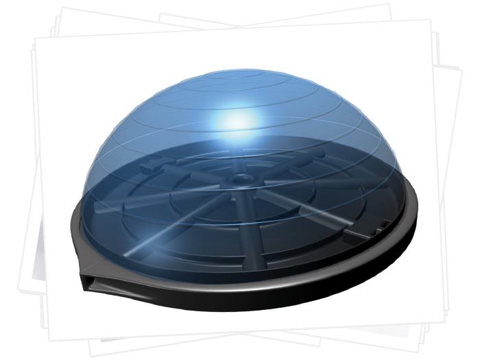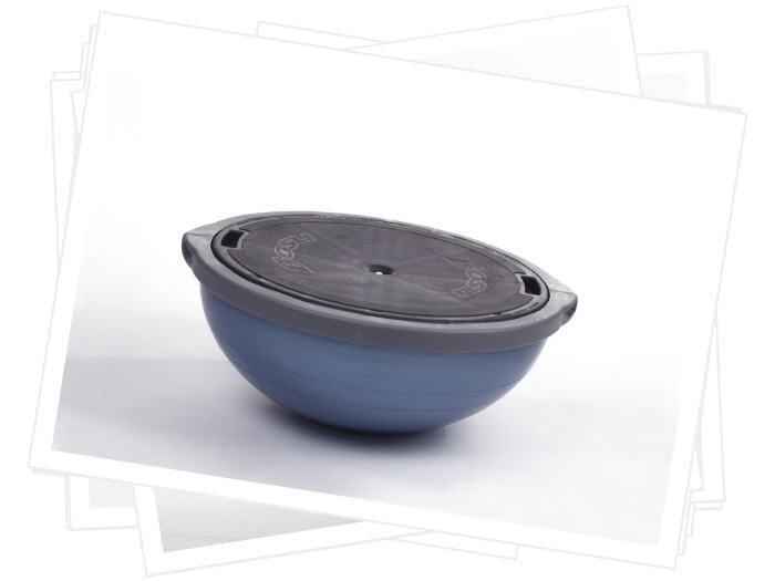 BOSU steht für "Both Sides Utilized". Mit dem BOSU Balance Trainer kann einerseits auf der gewölbten Seite, andererseits auf der flachen Seite trainiert werden. Der BOSU Balance-Trainer bietet auf diese Wiese verschiedene Möglichkeiten des Balance-/Gleichgewichtstrainings. Auf der flachen / festen Seite hat der Bosu Balance-Trainer einen Durchmesser von 63,5cm. Auf der anderern Seite wird der Ball solange aufgeblasen bis dieser fest ist. Die Höhe des BOSU Balance-Trainers beträgt aufgeblasen ca. 22cm. Mit Hilfe von zwei versenkten Handgriffen an der Unterseite wird das Umdrehen und Bewegen des BOSU Balance Trainers erleichtert.
